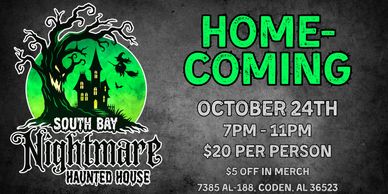 It’s time to show your SBN pride—Homecoming Night is here! Throw on your favorite South Bay Nightmare merch and take $5 off your ticket. But beware… school spirit won’t protect you from what lurks inside.