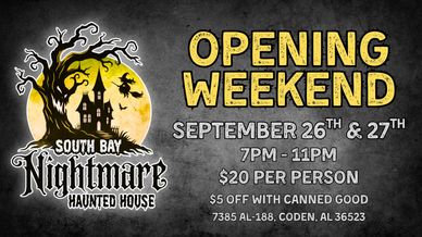 Dare to enter the most terrifying haunted house on the coast? Join us for opening weekend and face your fears!👻